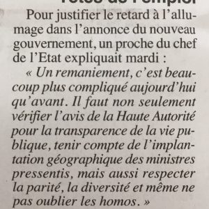 Remaniement et compétences : “Il ne faudrait pas oublier les homos”