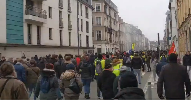 A Rouen un cortège massif où on pouvait voir des Gilets jaunes a fait reculer la police